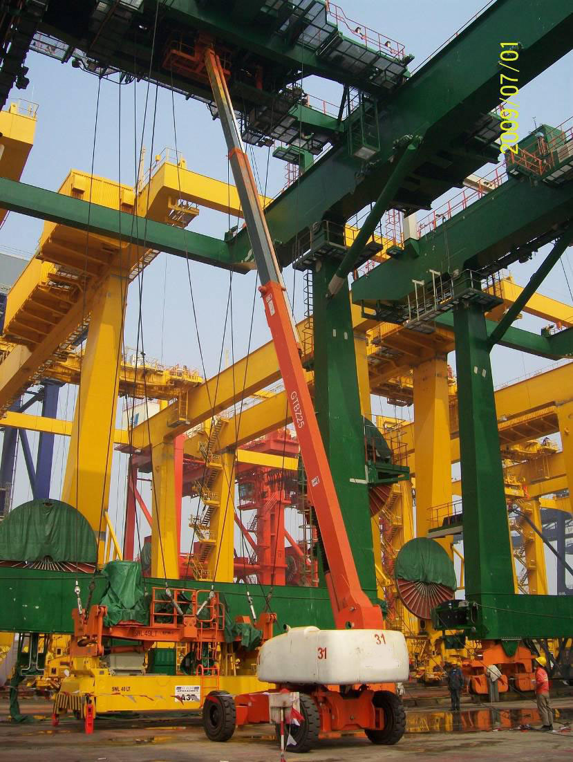 直臂GTBZ25在港口建设中的应用 ![]() 地点:江苏南通 行业:港口建设 机器型号:GTBZ 20 环境:港口码头 应用:22.6M工作高度 适用于维修,建设,喷涂等高空作业 操作方便,灵活安全 |